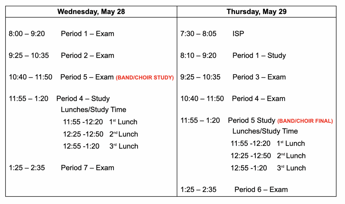 The senior waivers are done by each teacher. Senior students need a B+ average between the 3rd and 4th quarters to waive their final exam.
